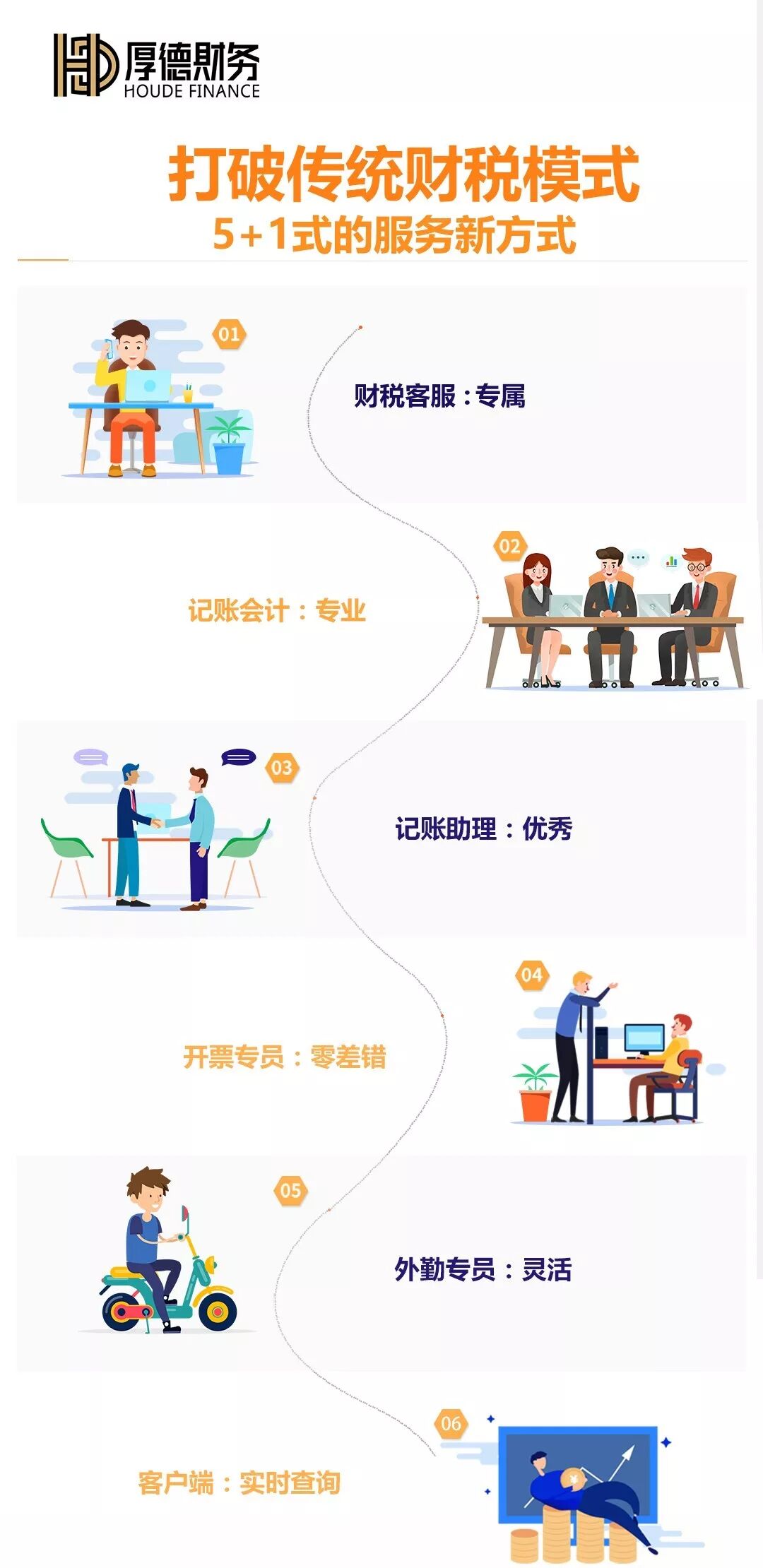 北京赢家厚德财务咨询有限公司,在财税行业口碑好、服务周到,信誉强。十年以上工作经验的老会计亲自挂帅,多名资深会计师组成的服务团队,且学历均在大专以上,人员配置合理且稳定。其独创的“5+1”服务模式颠覆性地创造全新财税服务模式。截止到目前已经为上千家企业提供代理记账、报税、代写卡开票、税收筹划等专业服务。